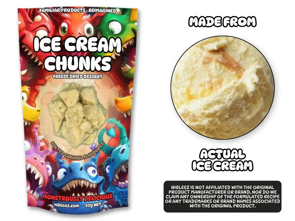 INDEMNITY: Although we sell freeze dried versions of Irresistible Salted Caramel Ice Cream (Coles) and may even sell them in their original and unaltered state, Tastybake is not affiliated with the manufacturer, nor do we claim any ownership of the formulated recipe or any trademarks or branding associated with the original product.