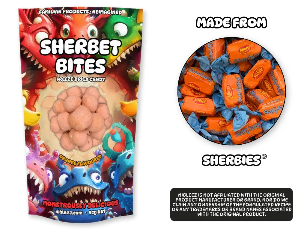Our Sherbet Bites (made from freeze dried Sherbies) are for all the sherbet lovers out there. By removing every bit of moisture from the candy, it becomes crisp and crunchy, while retaining every bit of flavour! For the candy connoisseur, these are sure to tantalise you! You simply need to try them!